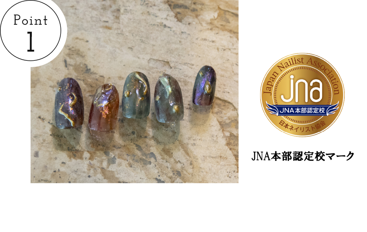ネイルスクールリュクスは、ネイル指導をする施設として、カリキュラム・指導者等の必須要件を満たし、高度な知識と技術を持つプロのネイリストの養成を認定されているスクールです。